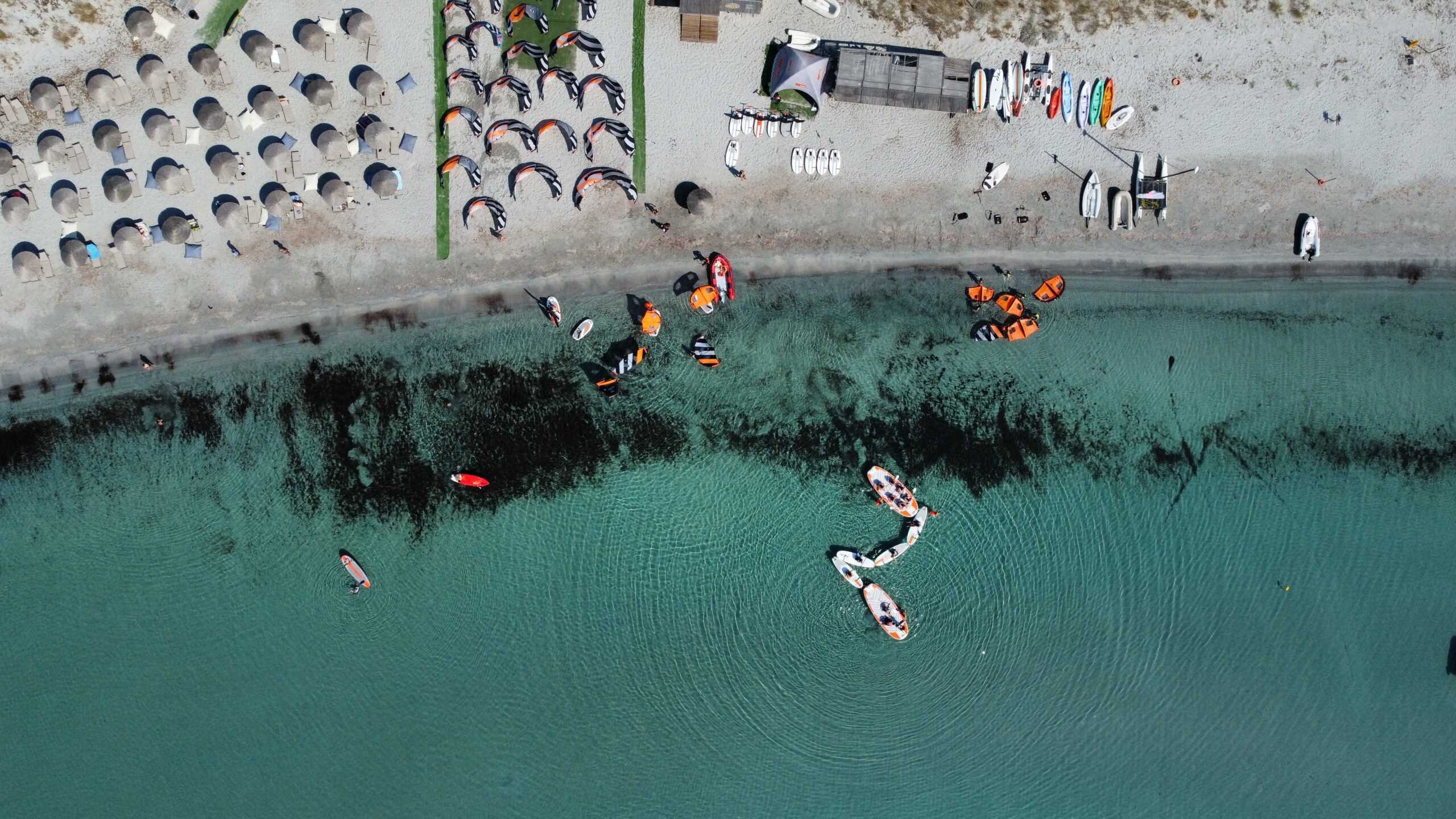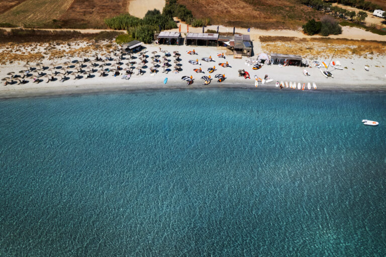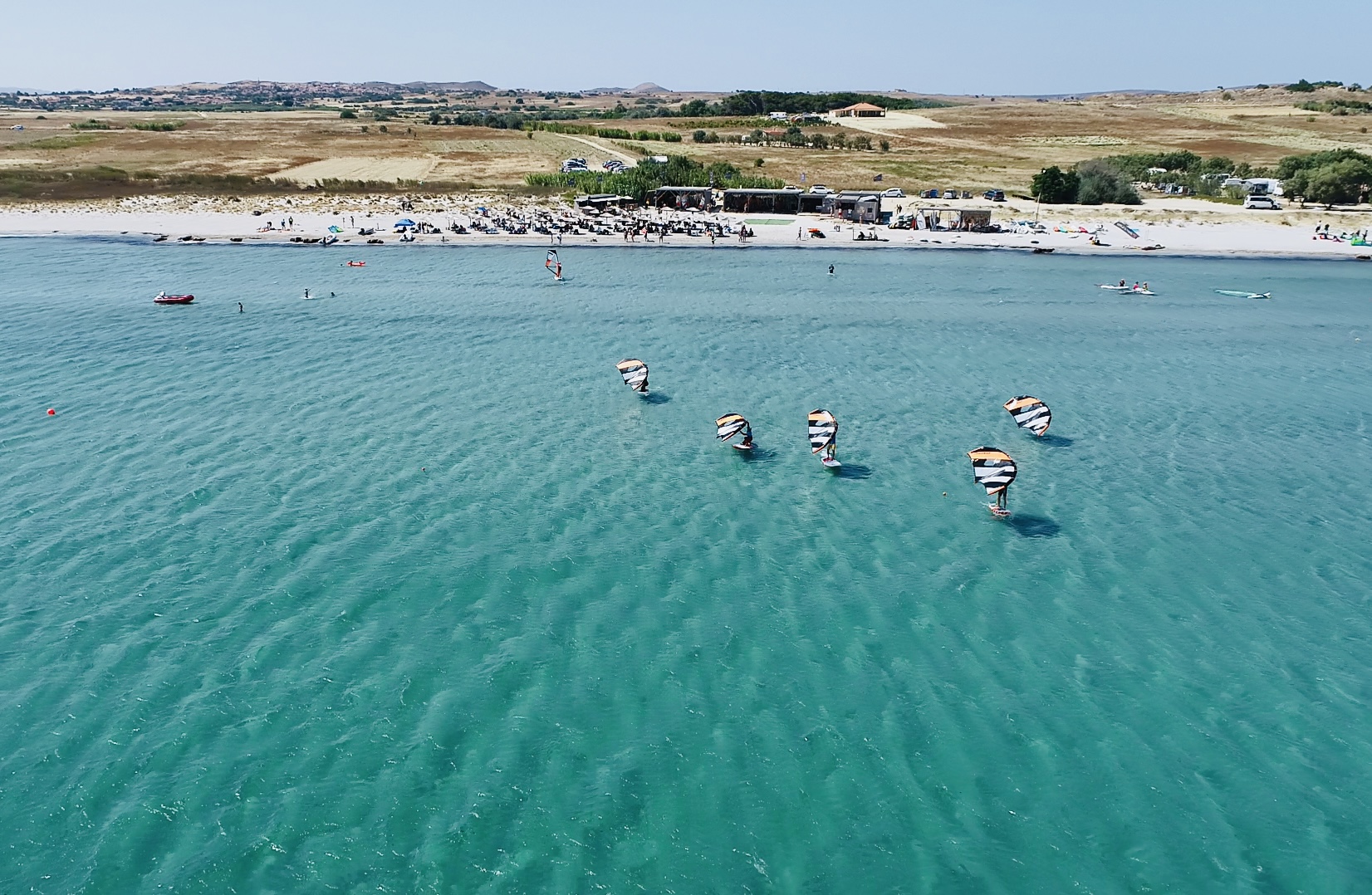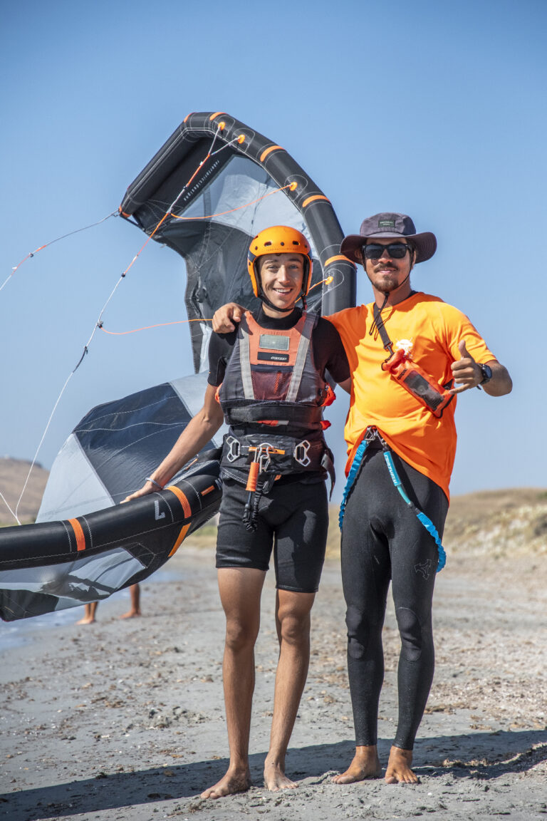 Kitesurfing, windsurfing, or wing foiling in one of Europe’s safest 3km turquoise sandy bays 💙