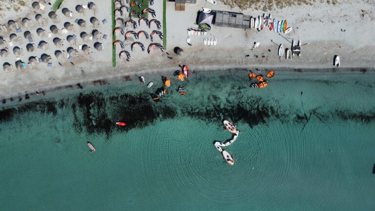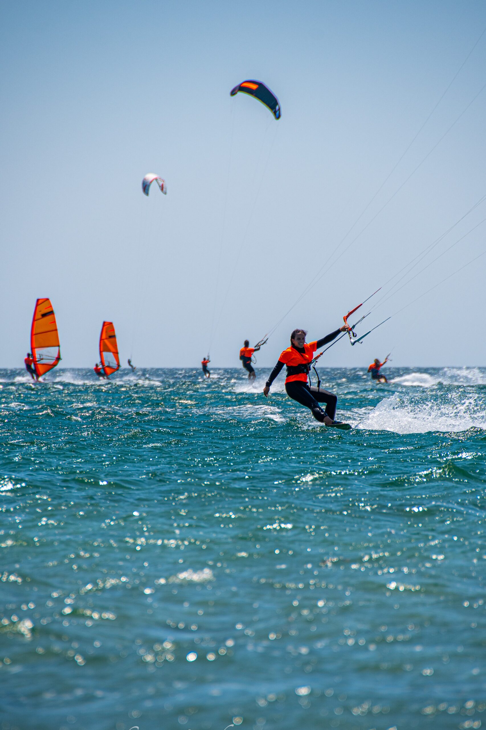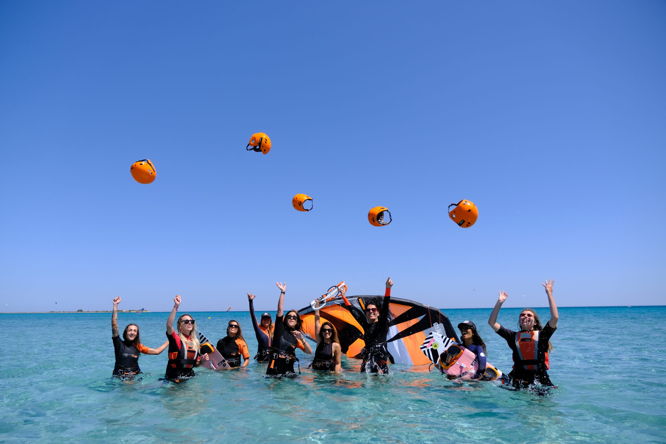 Kitesurfing, windsurfing, or wing foiling in one of Europe’s safest 3km turquoise sandy bays 💙